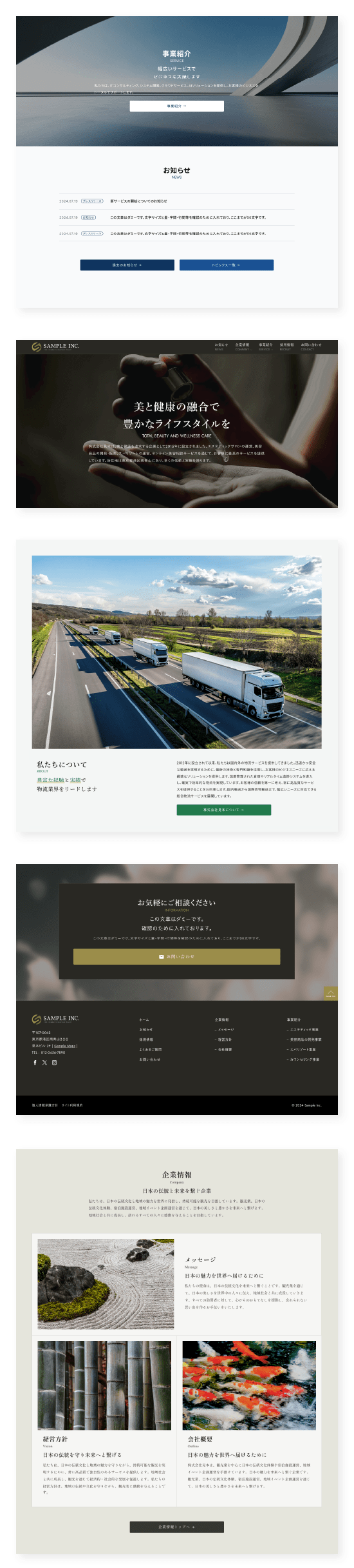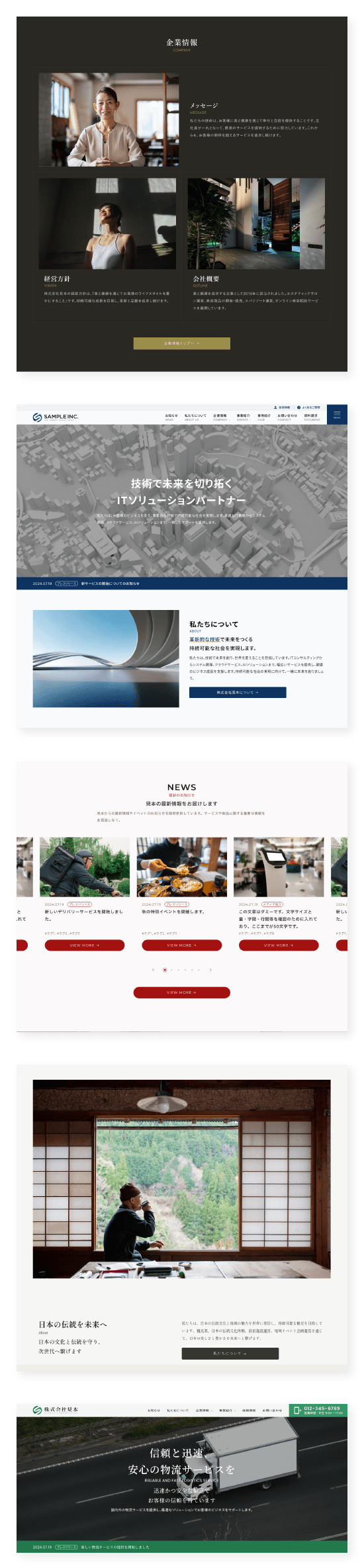 お客様のご要望をもとに、豊富なコーポレートサイト制作実績を持つプロのデザイナー・エンジニアが、独自モジュール(パーツ・レイアウト)・カラー・フォントを組み合わせてホームページを作成いたします。新規作成から既存サイトのリニューアルまですべてお任せください。